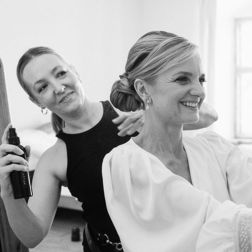 On the wedding day itself, I am by your side with calm presence and clear structure. I bring everything with me and create your look with precision and confidence — so you can relax and truly enjoy your day.